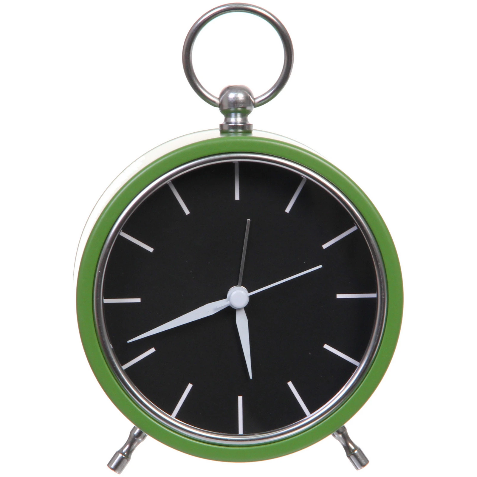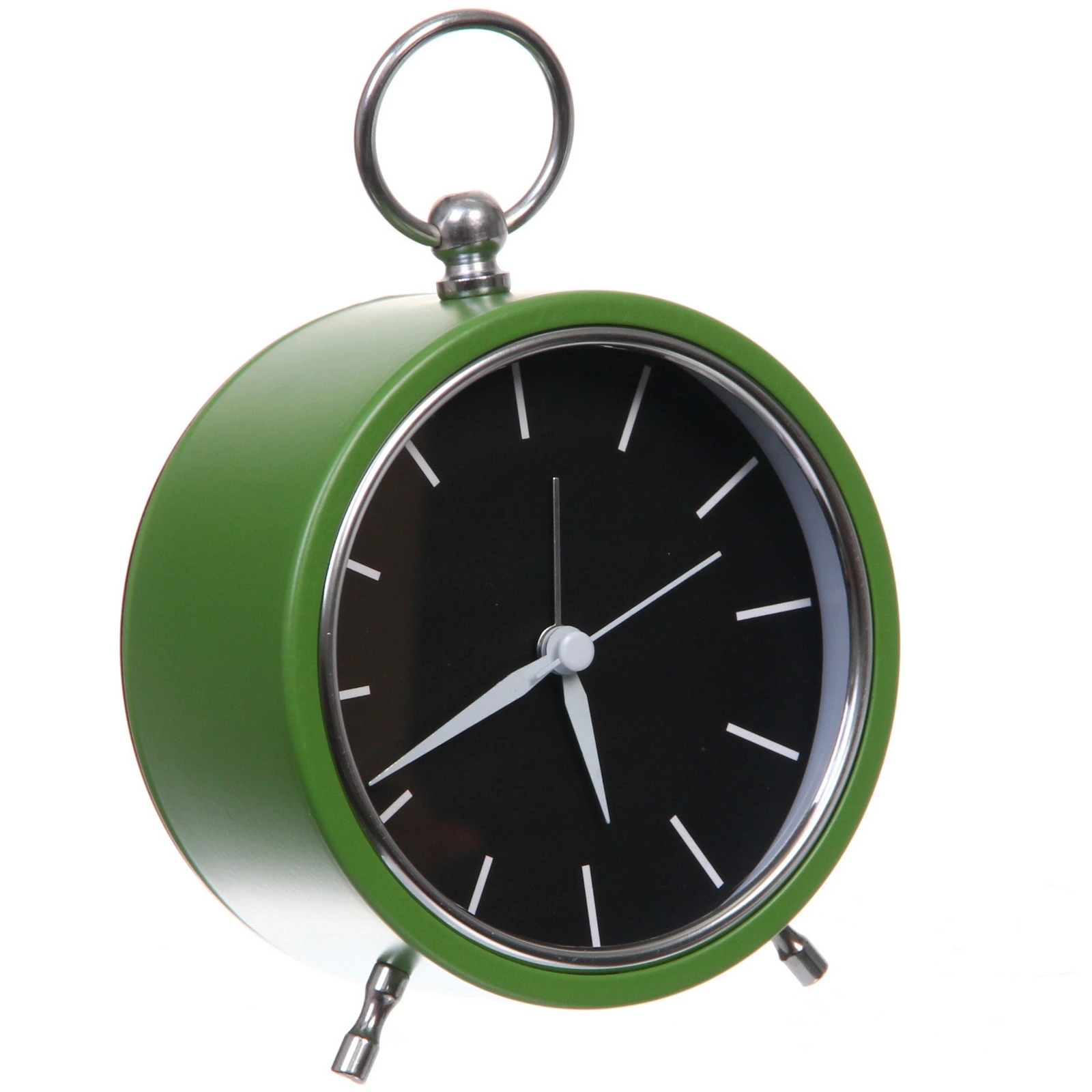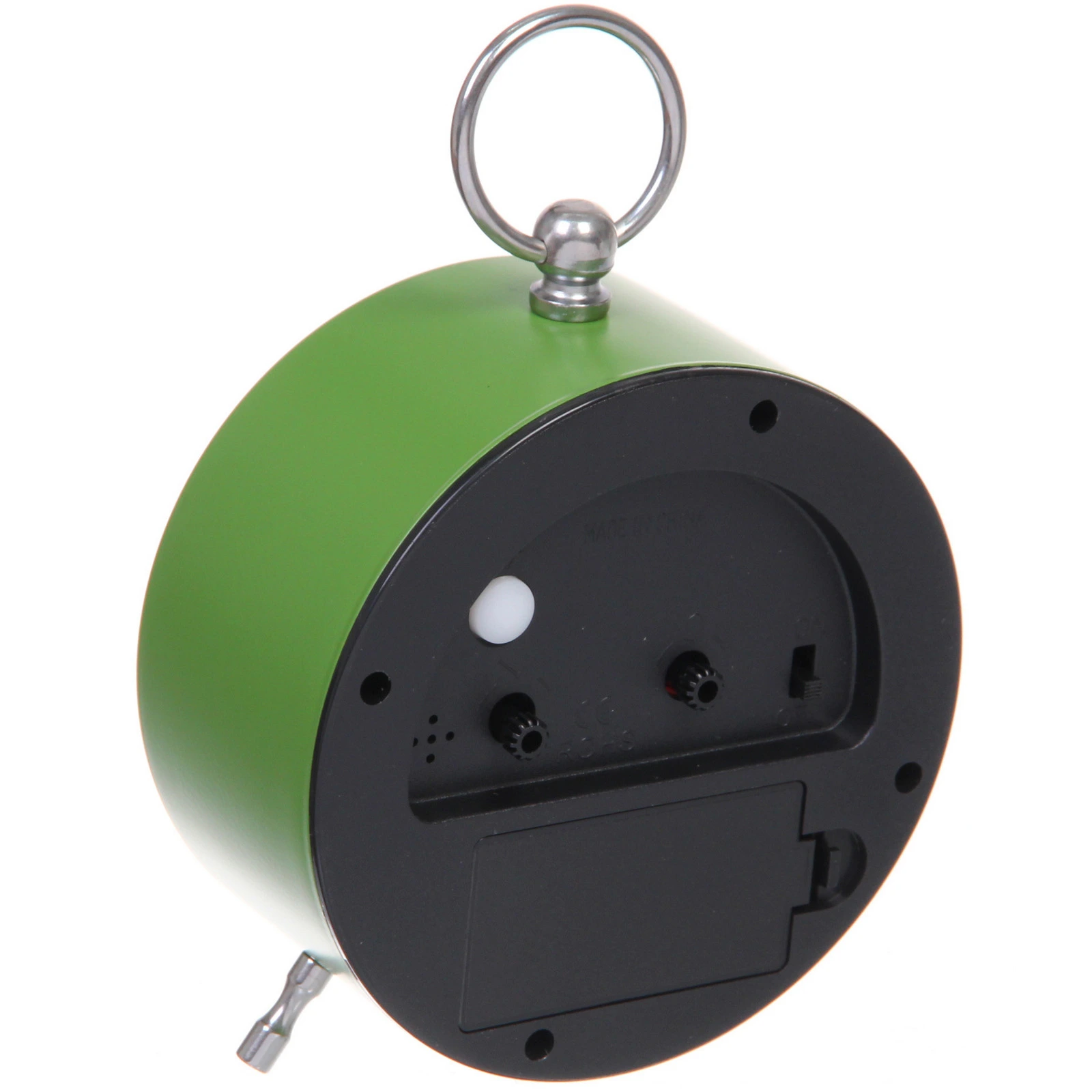 - Удобное размещение: благодаря металлическому кольцу в верхней части будильник можно не только ставить на стол, но и подвешивать на стену или крючок.