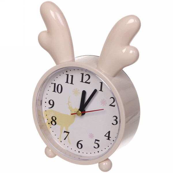 Будильник выполнен из качественного пластика, что обеспечивает его долговечность и надежность. Его игривый дизайн с рогами оленя и изображением золотистого оленя на циферблате делает его уникальным и запоминающимся. Не упустите возможность добавить этот стильный будильник в свою коллекцию!