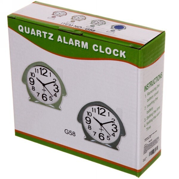Корпус будильника выполнен из прочного пластика, что гарантирует долговечность и надежность. Белый циферблат с черными цифрами и стрелками обеспечивает хорошую читаемость времени. Будильник работает от батареи, что делает его мобильным и удобным для перемещения.