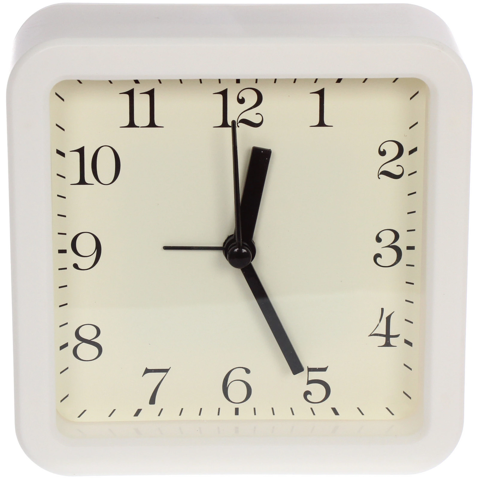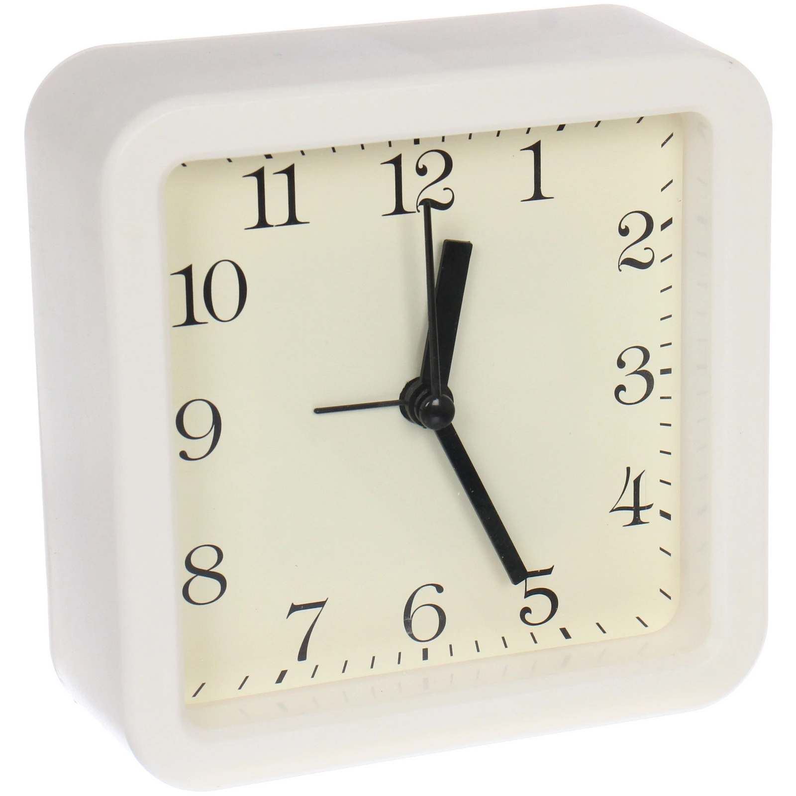 - Стильный и универсальный дизайн: квадратный корпус со скругленными углами и гранями, кремовый циферблат с контрастными черными отметками. Будильник гармонично впишется в современный, скандинавский, минималистский или детский интерьер.