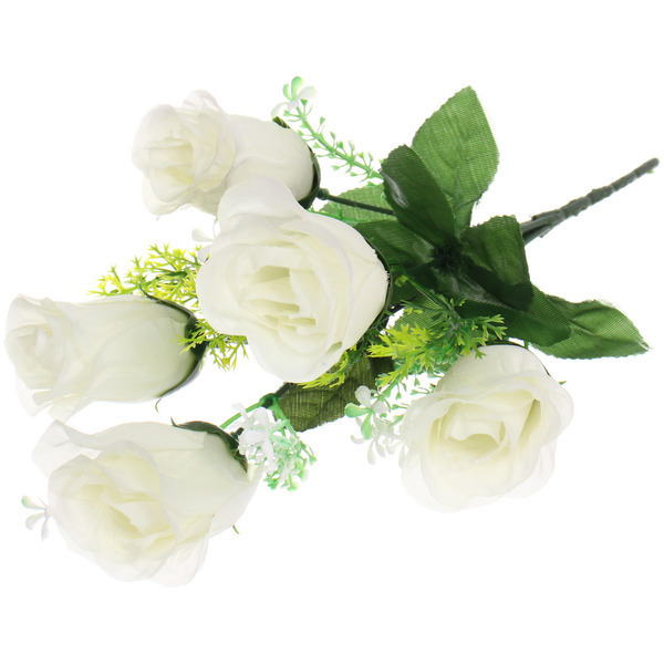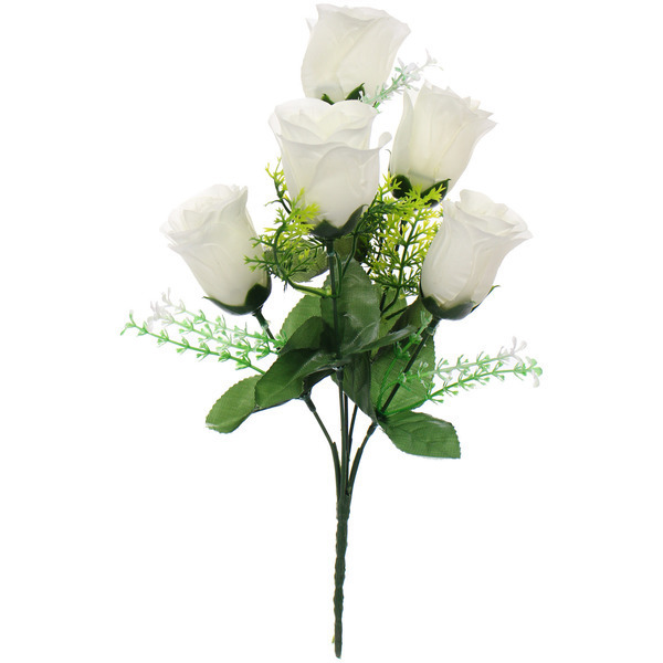 Букет искусственных роз 35см, белый, 5 цветков, пластик/полиэстер