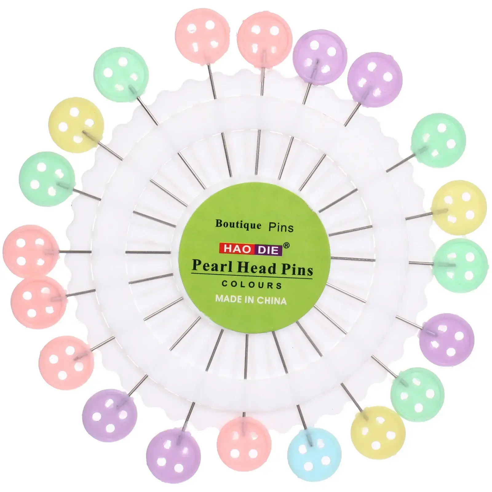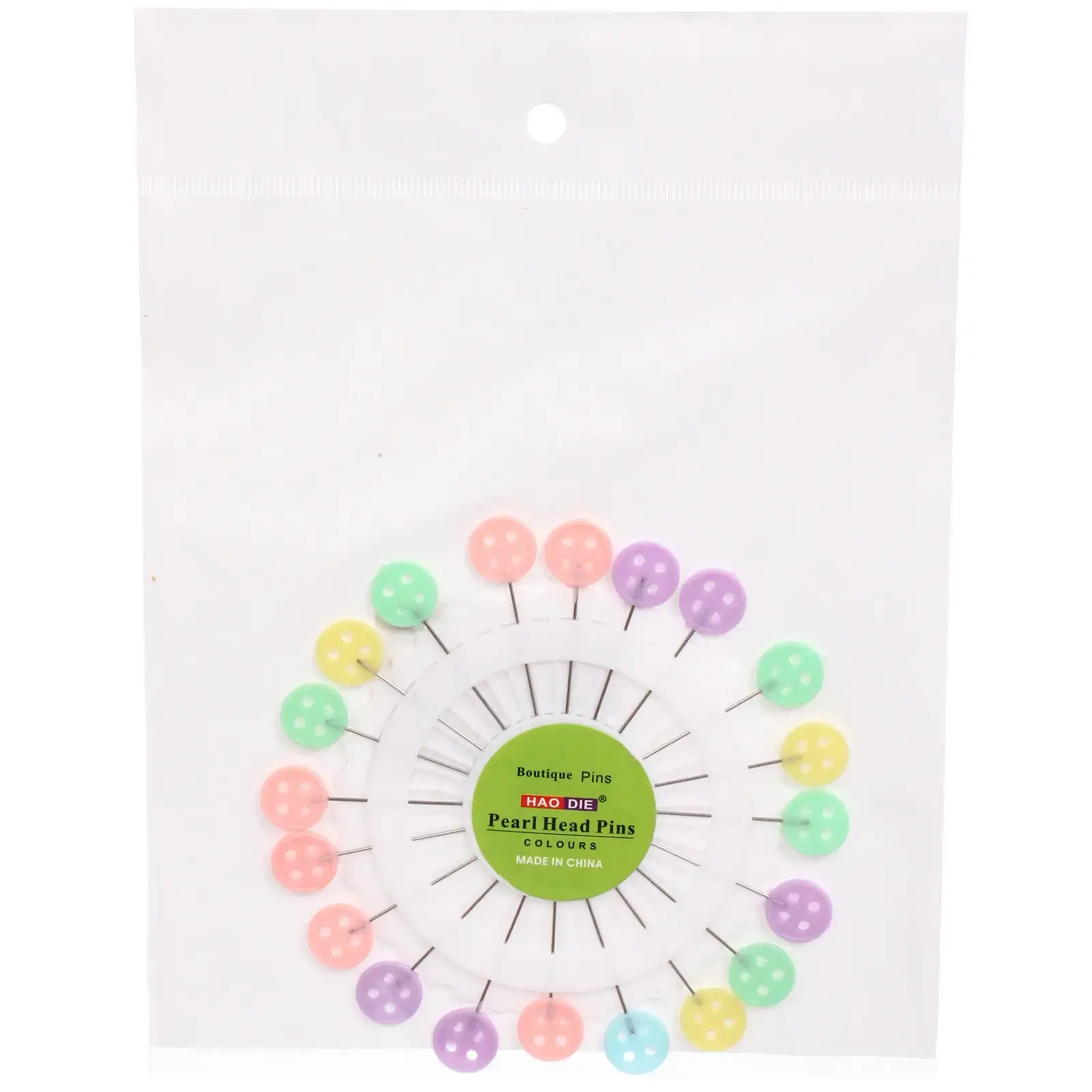 Каждая булавка имеет диаметр головки около 1 см и содержит 2-4 отверстия, что делает их удобными в использовании. Упаковка выполнена в виде круглой подставки, что позволяет удобно хранить булавки и быстро находить их при необходимости. Эти булавки произведены в Китае и соответствуют высоким стандартам качества.