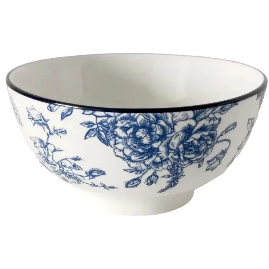 Бульонница «Blue Posy» 700 мл, белая с синим цветочным узором и черной каймой