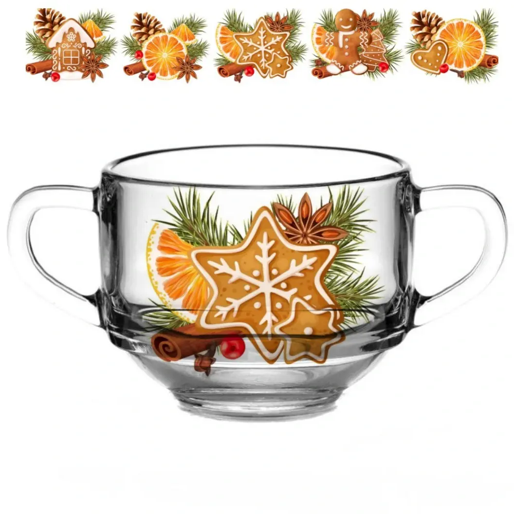 Бульонница стеклянная 480мл 'Со вкусом праздника', цвета в ассортименте, зимний декор