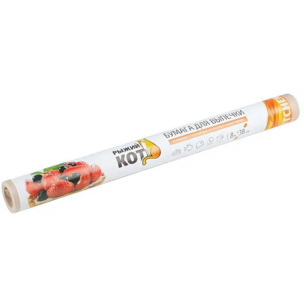 Бумага изготовлена из качественного материала, который обеспечивает надежность и долговечность. Размер рулона составляет 8 м в длину и 38 см в ширину, что позволяет использовать её для различных кулинарных задач. Упаковка имеет цилиндрическую форму и белый цвет с яркими изображениями ягод, что делает её привлекательной и удобной для хранения.