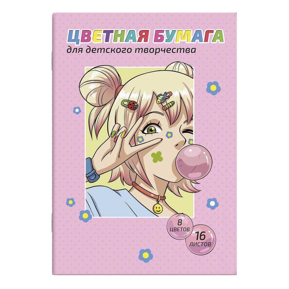 Цветная бумага для творчества "Манга", 8 цветов, 16 листов, 195х270 мм, дизайн 2