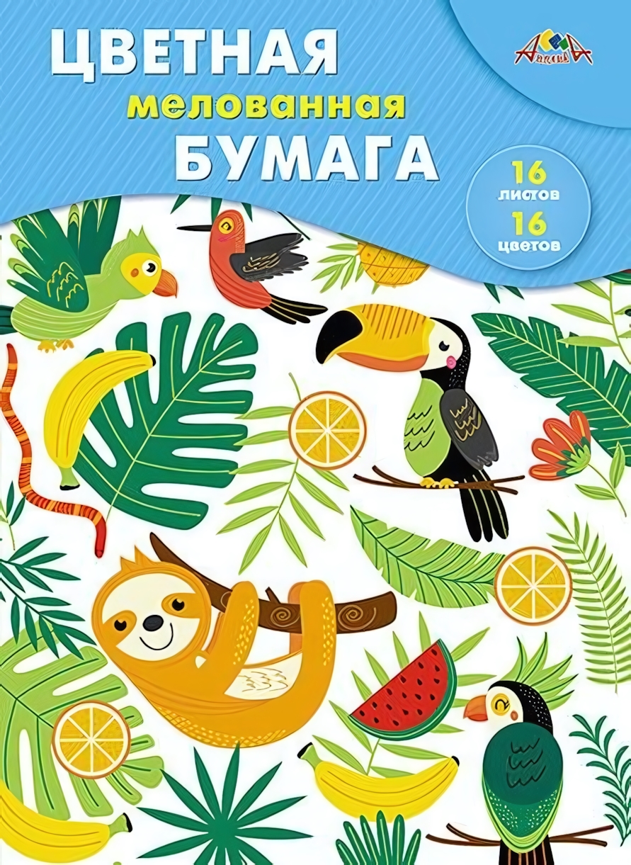 Набор цветной бумаги «Яркие тропики» А4, 16 листов, 16 цветов, мелованная, 60 г/м²