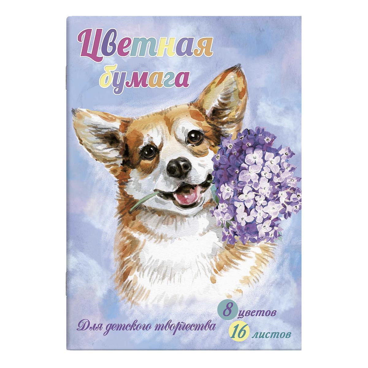 Цветная бумага для детского творчества «Щенок и цветы», 8 цветов, 16 листов А4, Феникс+