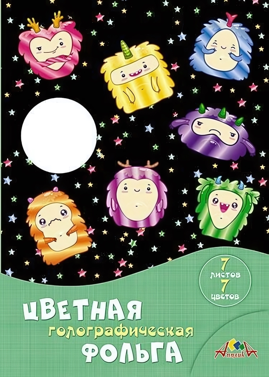 Цветная голографическая фольга 'Звездные монстрики', 7 листов/7 цветов, формат А4