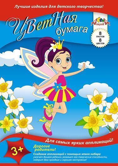Набор цветной бумаги «Принцесса» для детского творчества, 8 листов, 8 цветов, А4, 3+
