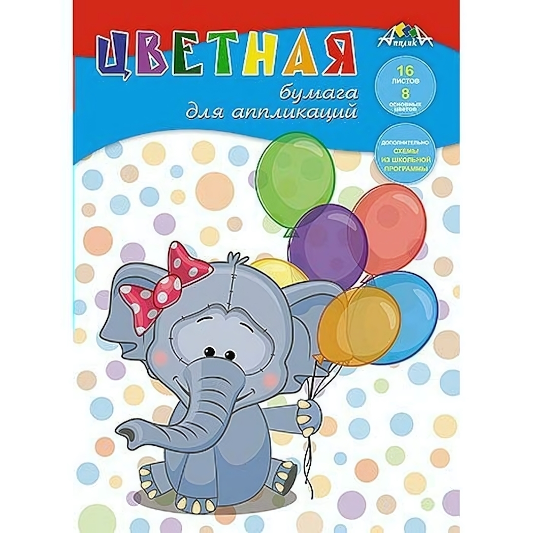 Цветная бумага для аппликаций «Слонёнок», 16 листов А4, 8 цветов, схемы для творчества