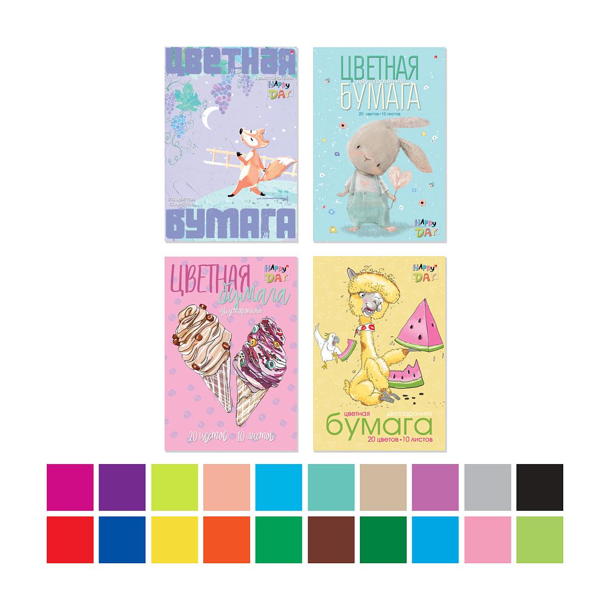 Бумага цветная А4, 20 цветов, 10 листов, двусторонняя, для творчества и аппликаций