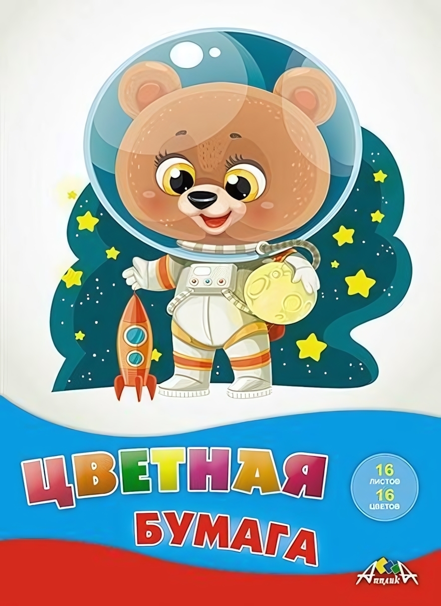 Цветная бумага «Малыш-космонавт» А4, 16 листов/16 цветов, офсетная, безопасная для детей от 3 лет
