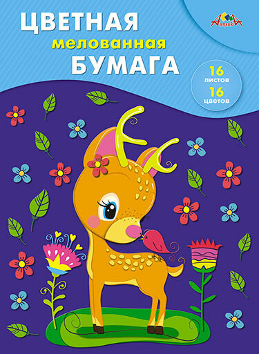 Набор цветной бумаги «Малыш оленёнок», А4, 16 листов, 16 цветов, мелованная, скоба, 60 г/м²