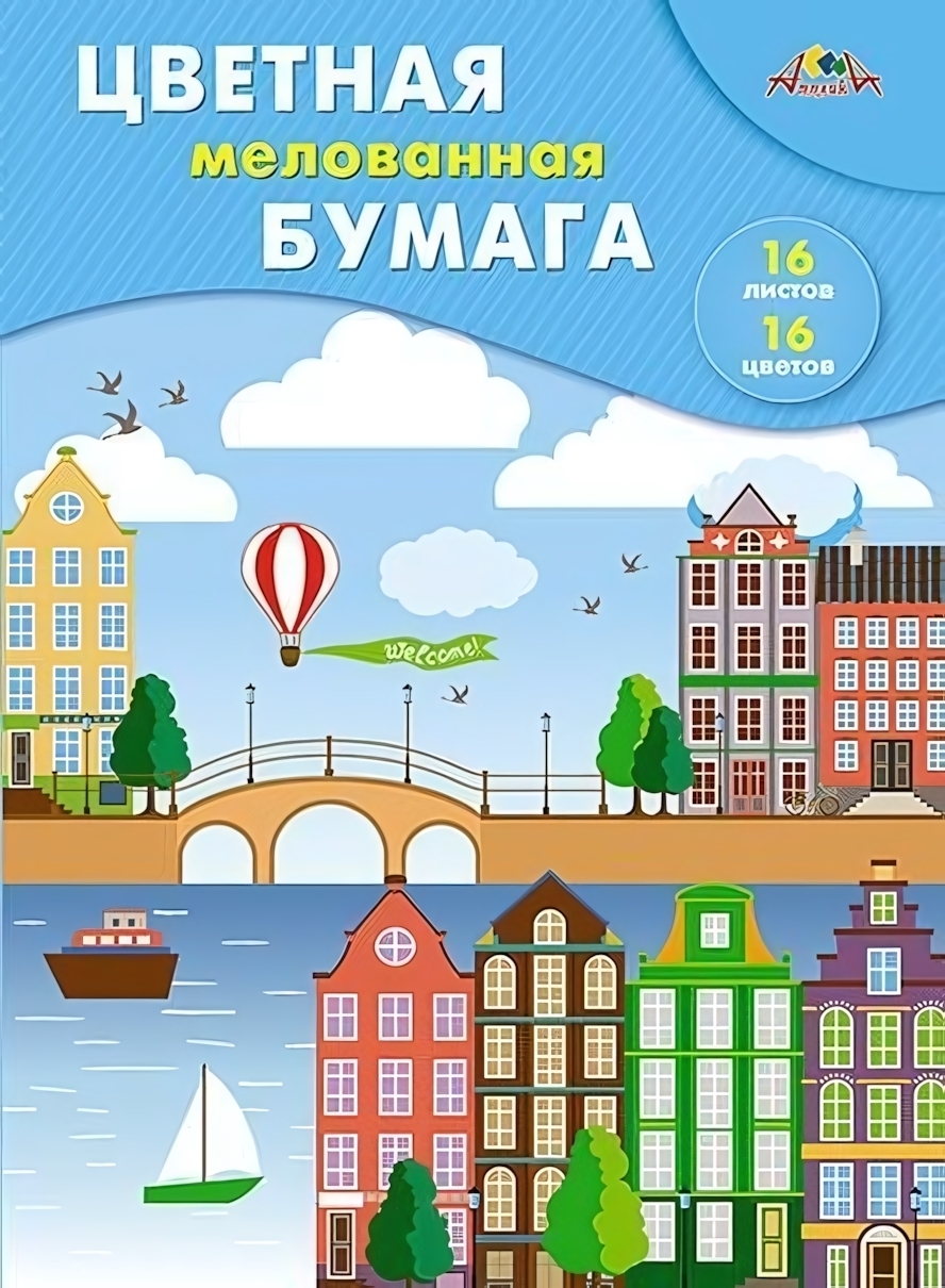 Набор цветной бумаги "Яркий город" А4, 16 листов, 16 цветов, мелованная, двойной прокрас, для детского творчества