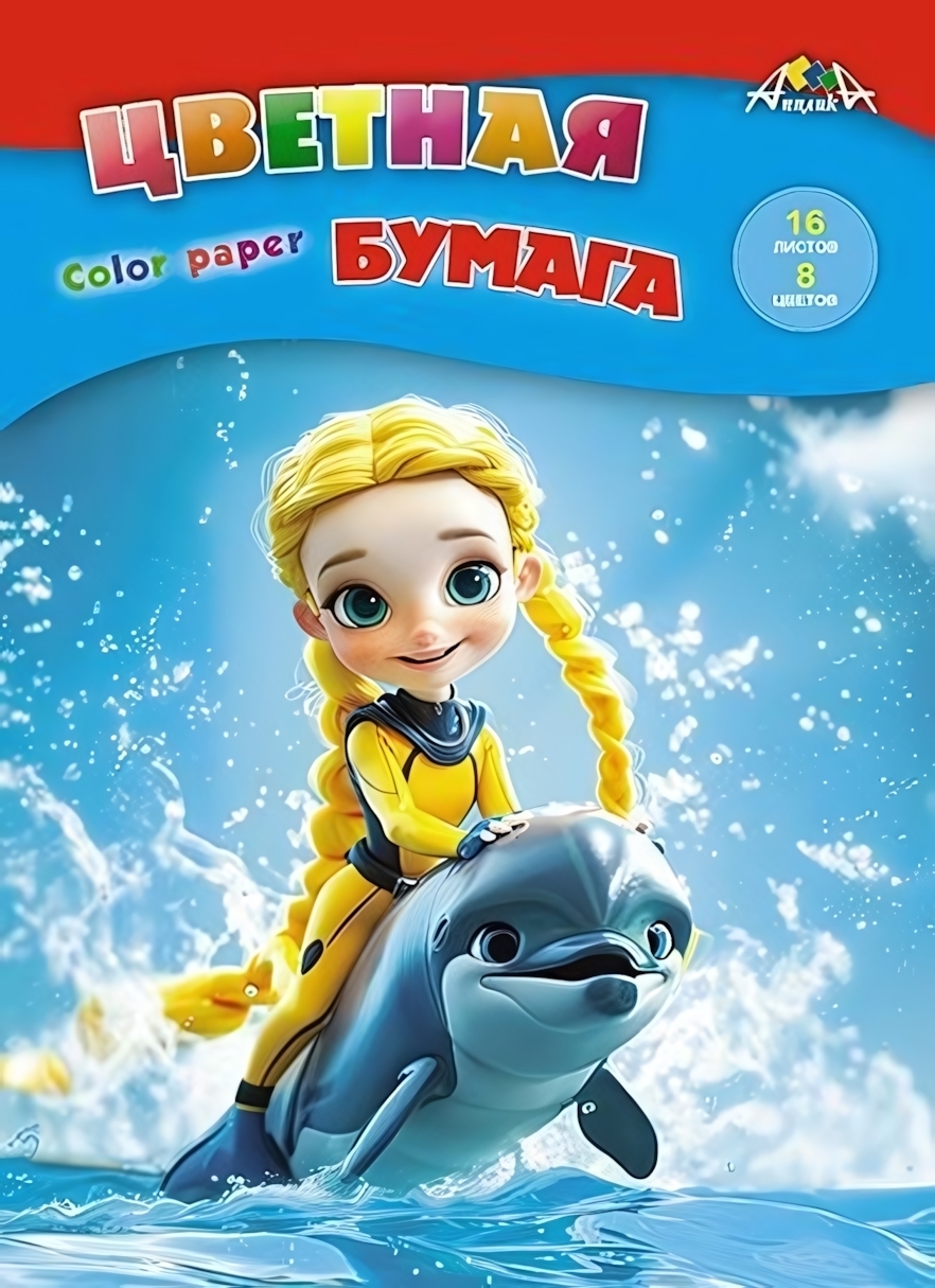 Почему выбирают именно этот набор? Он содержит 16 листов яркой цветной бумаги из 8 насыщенных цветов, выполненных из качественного, безопасного материала. Упаковка украшена привлекательной иллюстрацией девочки и дельфина, что делает его особенно притягательным для детей и родителей.