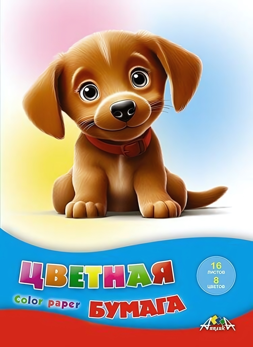Бумага цветная A4, 16 листов, 8 цветов "Милый щенок" – яркие цвета для творчества