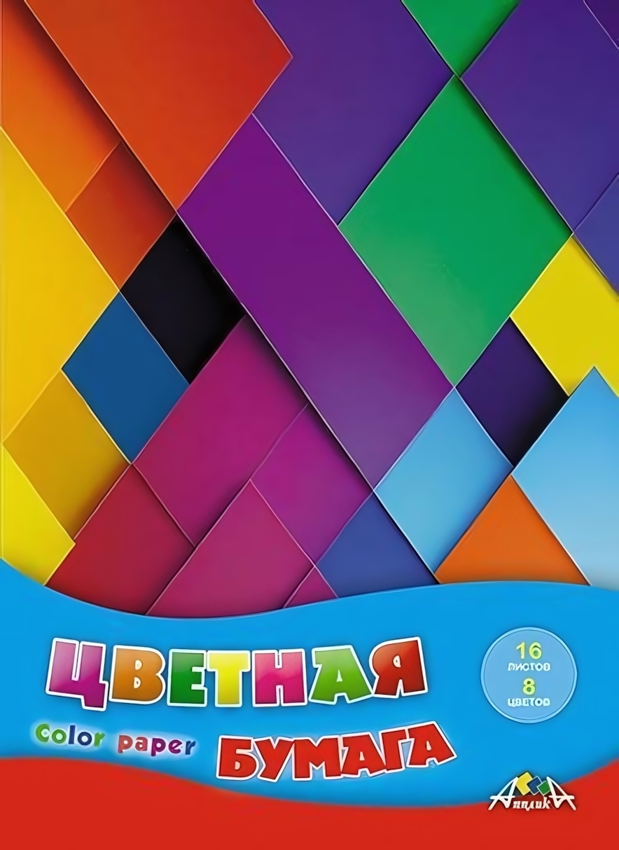 Бумага цветная A4, 16 листов, 8 цветов "Цветная абстракция" – яркие краски для творчества и аппликаций