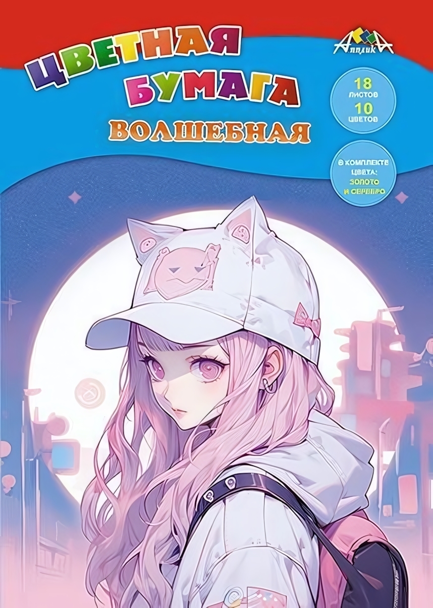 Набор цветной бумаги с уникальным дизайном «Аниме. Девочка» создан для воплощения ярких идей! 18 листов плотностью 50 г/м² обеспечат аккуратную работу без просвечивания, а золотые и серебряные мелованные листы добавят волшебства вашим поделкам.