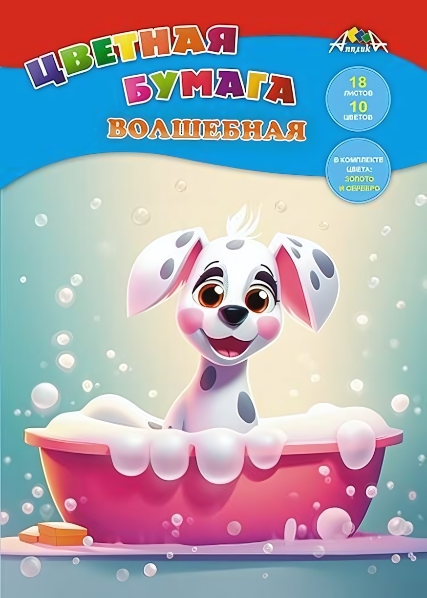 Цветная бумага А4 «Щенок-чистюля» 18 листов, 10 цветов с золотом и серебром, 50 г/м²