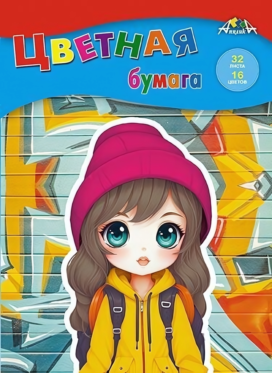 Цветная бумага А4, 32л, 16цв, плотность 50г/м2, серия 'Аниме'