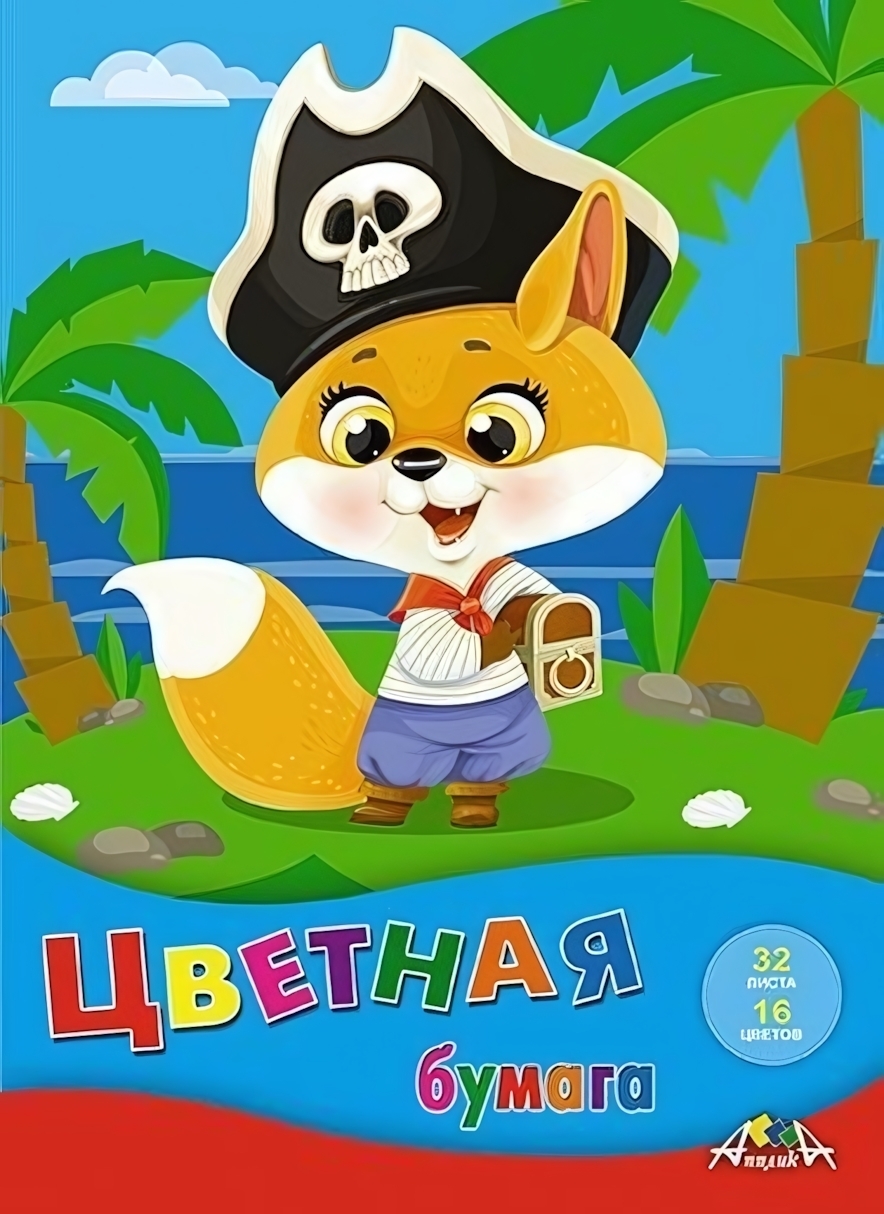 Цветная бумага «Юный пират» А4, 32 листа, 16 цветов, скоба, плотность 50 г/м²