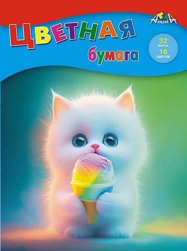 Бумага цветная А4 32л,16цв. «Котенок с мороженым» — яркая дляDecor, творчества