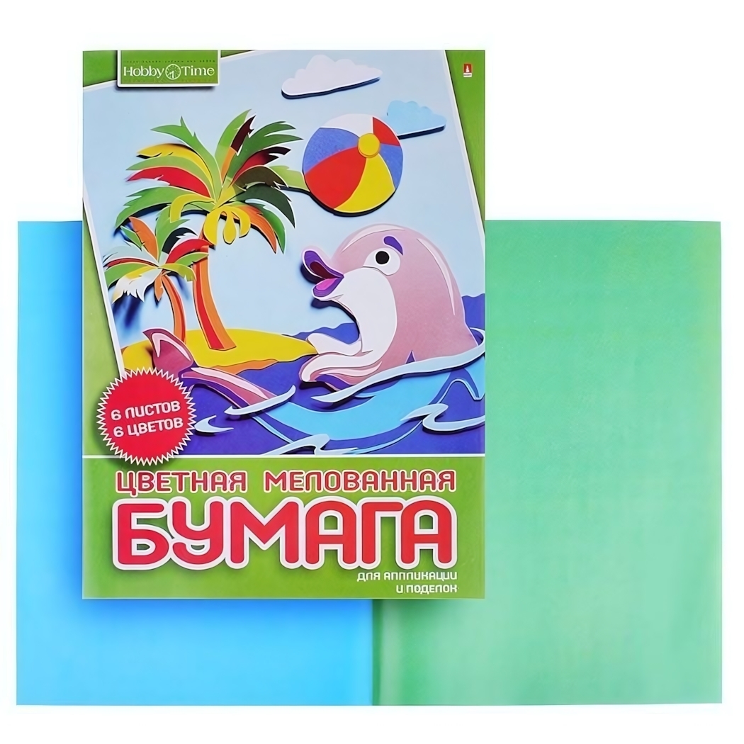 Бумага цветная A4, 6 листов, 6 цветов, для аппликаций Hobby Time "Альт", мелованная