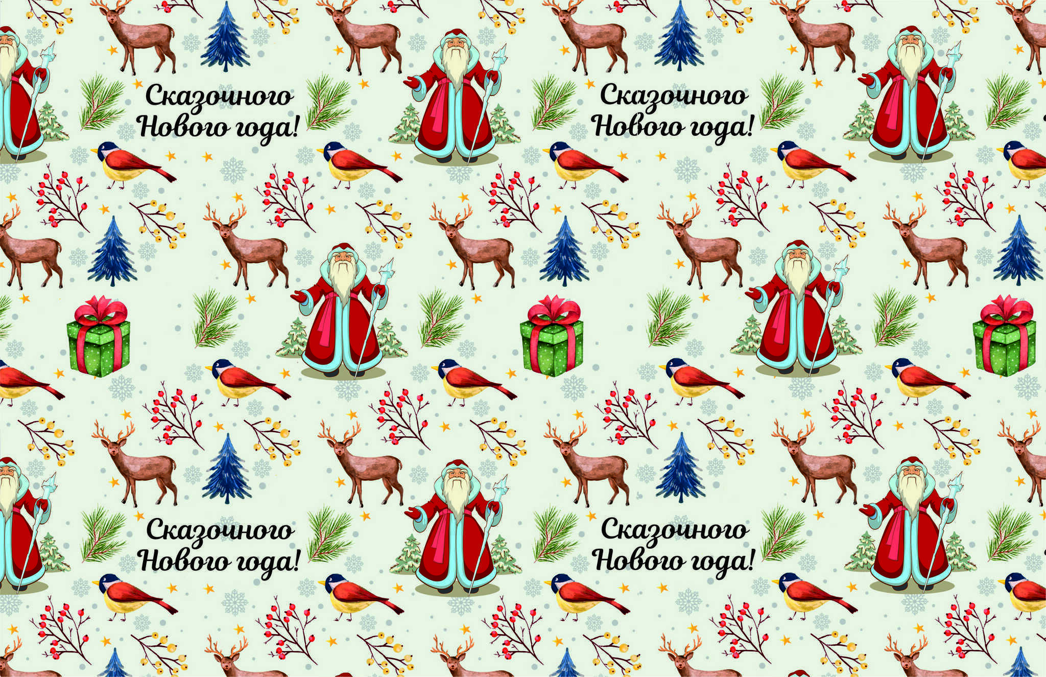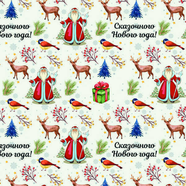 Создайте атмосферу волшебства и радости с помощью нашей упаковочной бумаги «Зимняя сказка». Эта глянцевая бумага плотностью 90 гр/м² идеально подходит для упаковки подарков на Новый год и другие праздники. Яркий и красочный дизайн с изображением Деда Мороза, оленей и новогодних атрибутов добавит особый шарм вашим подаркам, делая их по-настоящему уникальными.