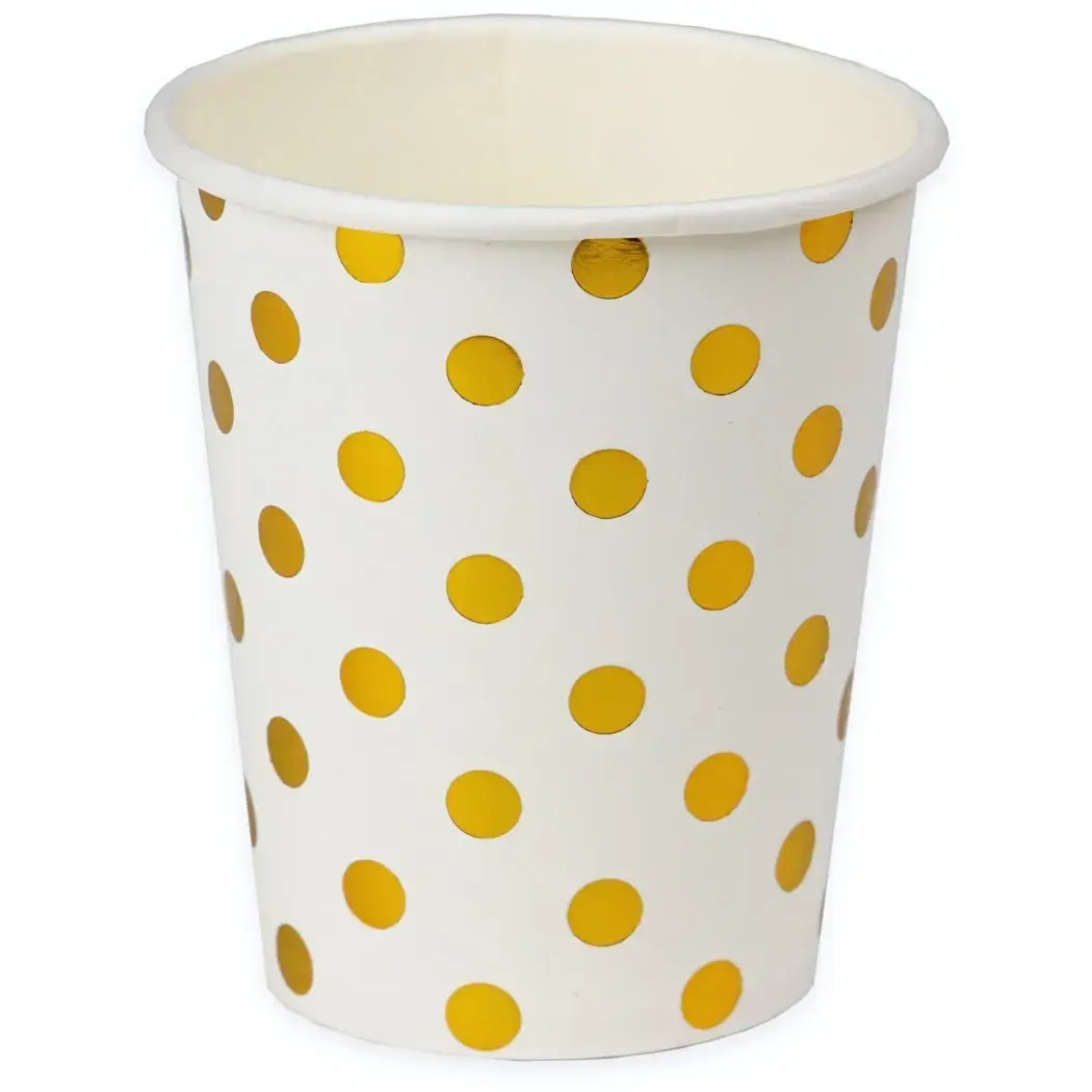 Создайте атмосферу праздника с нашими бумажными стаканами с золотым тиснением. Эти стаканы идеально подходят для горячих и холодных напитков, добавляя стиль и элегантность к любому мероприятию. Благодаря своему уникальному дизайну с золотыми кругами, они станут отличным дополнением к вашему столу на свадьбах, днях рождениях и других торжествах.