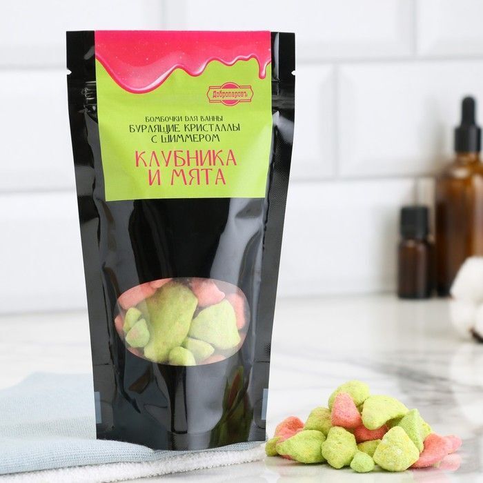 Не упустите возможность подарить себе и своим близким моменты настоящего удовольствия с бурлящими кристаллами 'Клубника и мята'!
