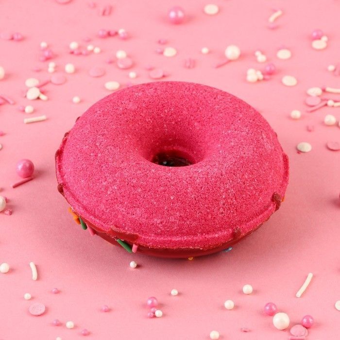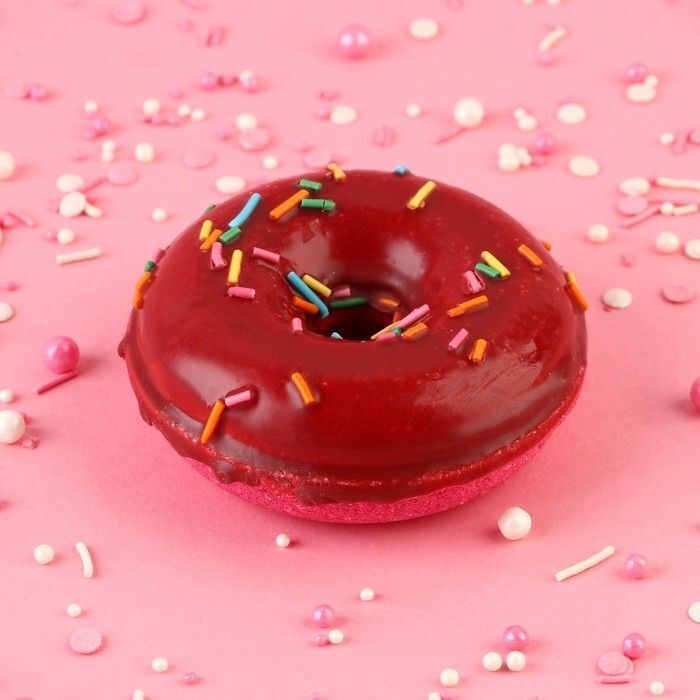 Бурлящий пончик имеет форму классического пончика с отверстием в центре, что делает его не только красивым, но и удобным в использовании. Ярко-красный цвет глазури и разноцветные сахарные посыпки создают настроение и поднимают настроение. Продукт произведен в России, что гарантирует высокое качество и безопасность.