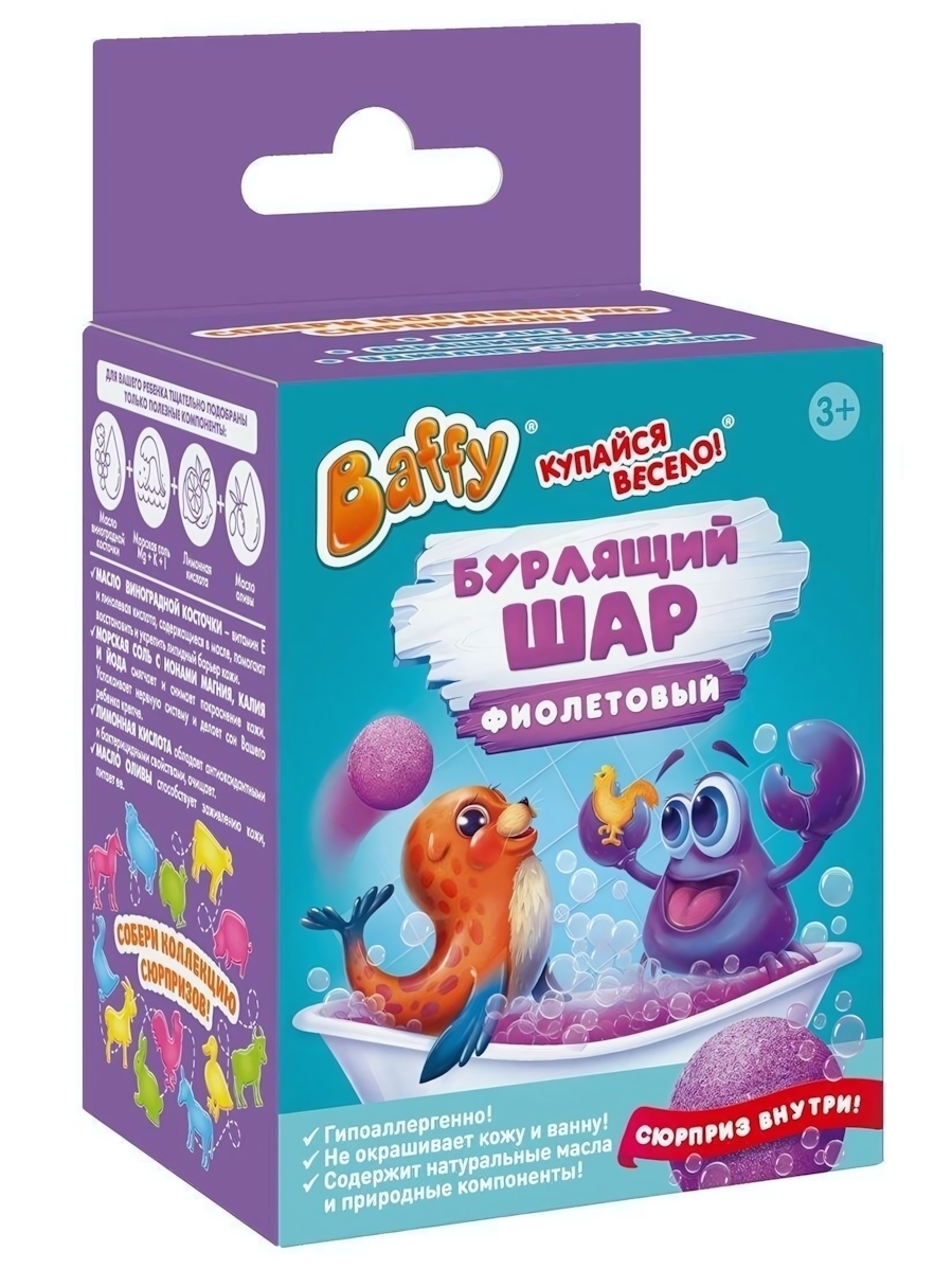 С бурлящим шаром Baffy каждый вечер станет особенным: яркие пузыри, приятный аромат и скрытый сюрприз внутри сделают водные процедуры любимым занятием вашего малыша.