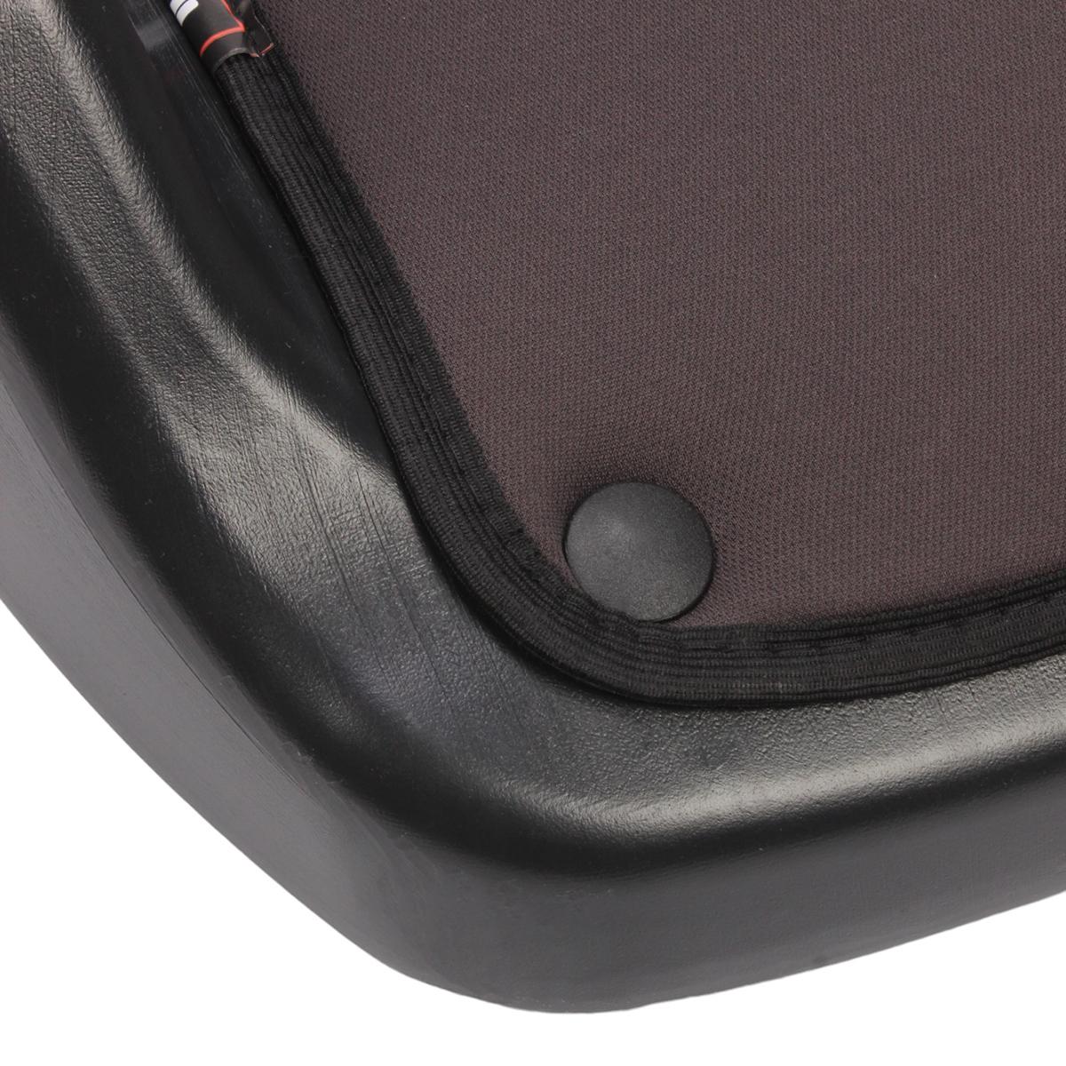 Корпус изготовлен из высококачественного пластика, устойчивого к механическим повреждениям. Мягкая накладка выполнена из прочной ткани, которая не скользит и обеспечивает комфорт при длительных поездках.