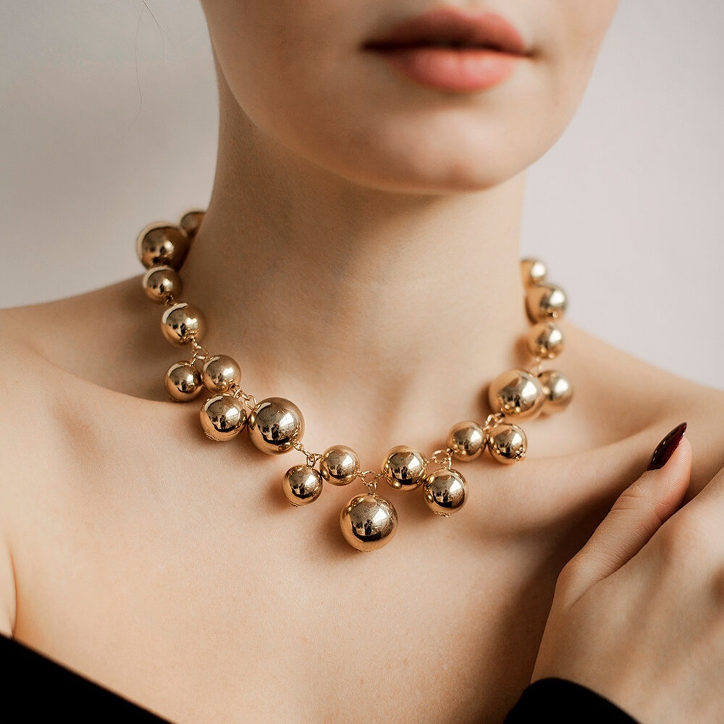 Элегантные бусы с крупными золотистыми шарами