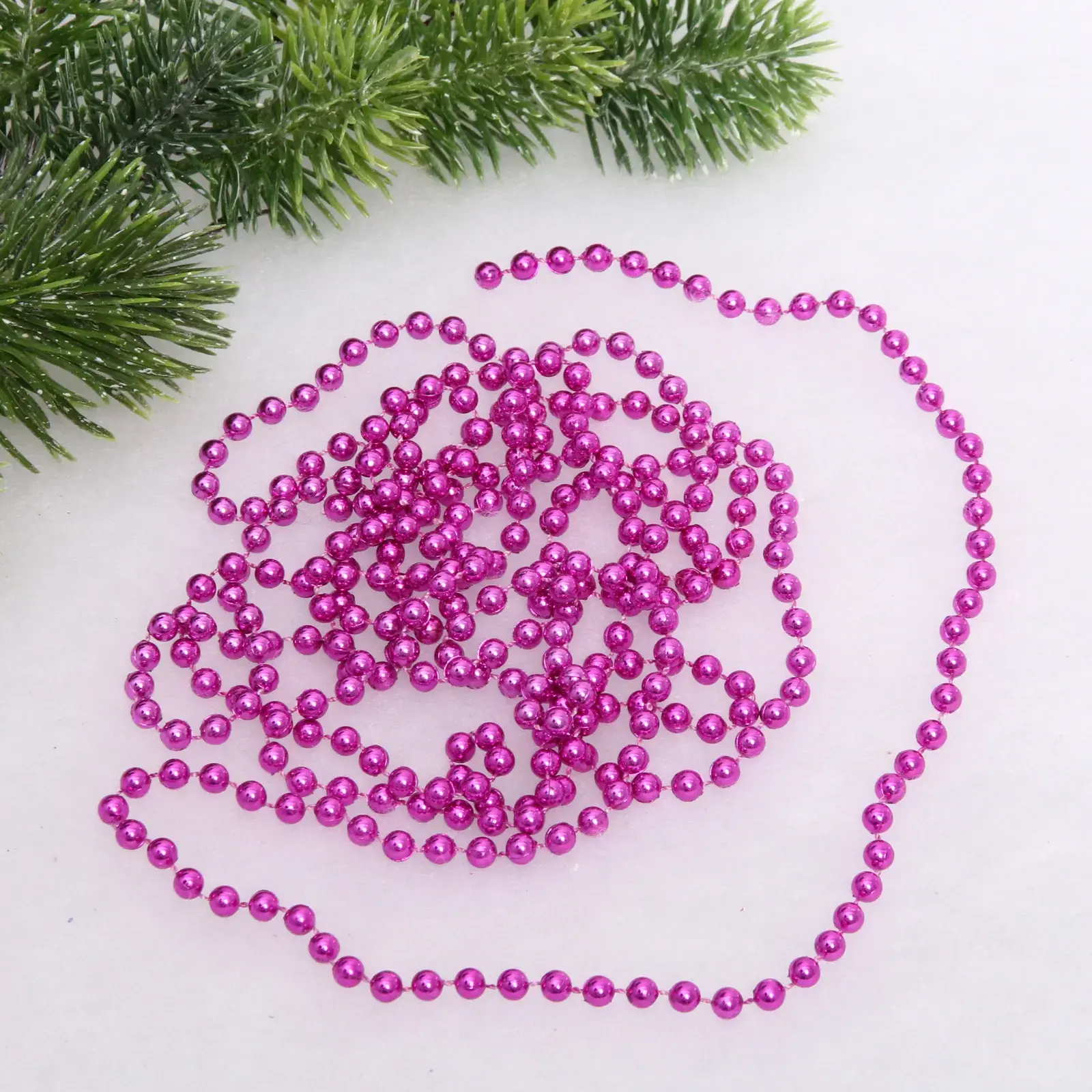 Эти яркие бусины фуксия длиной 2,7 метра добавят особое очарование вашему новогоднему декору. Они идеально подходят для украшения елки, создания праздничной атмосферы и добавления ярких акцентов в интерьер. Бусы выполнены из качественного пластика, что обеспечивает их долговечность и легкость в использовании.