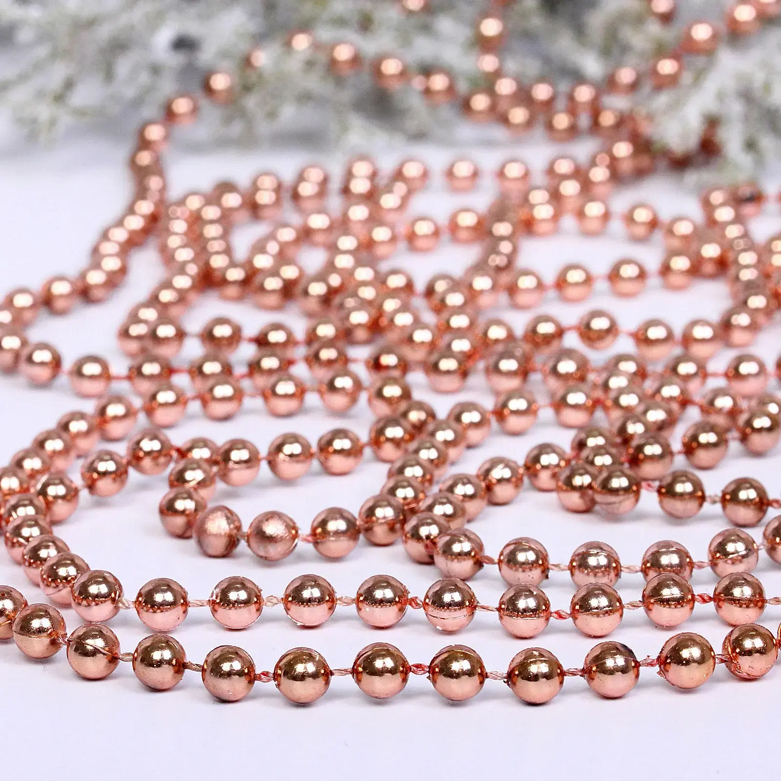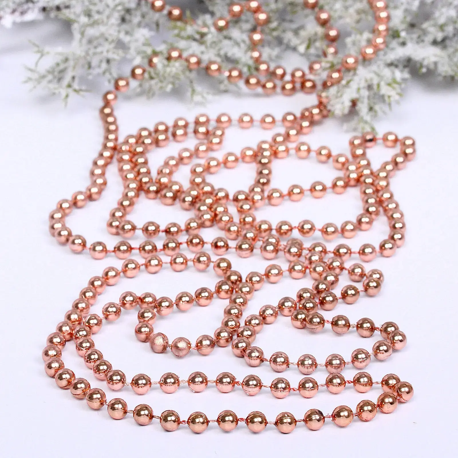 Бусы на елку длиной 2,7 метра в розовом золоте — это идеальное решение для создания праздничной атмосферы в вашем доме. Эти бусины добавят яркие акценты и сделают ваш новогодний декор по-настоящему уникальным. Благодаря гладкой поверхности и блестящему цвету, они прекрасно отражают свет, создавая эффект волшебства и уюта.