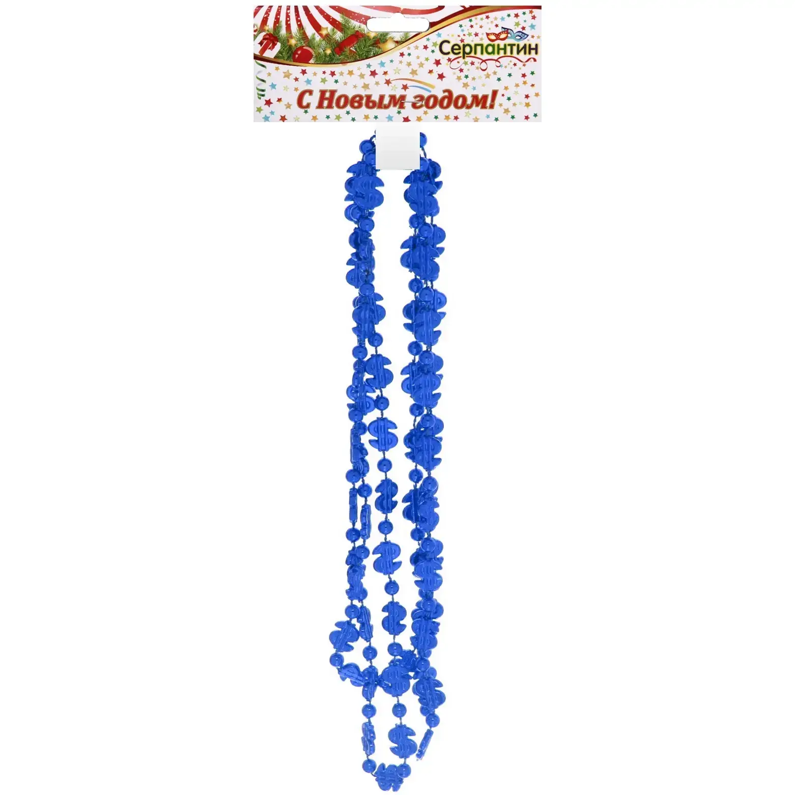 Праздничные бусы 'Доллары' станут ярким акцентом в вашем новогоднем декоре. Их насыщенный синий цвет и оригинальный дизайн привлекут восхищенные взгляды гостей.