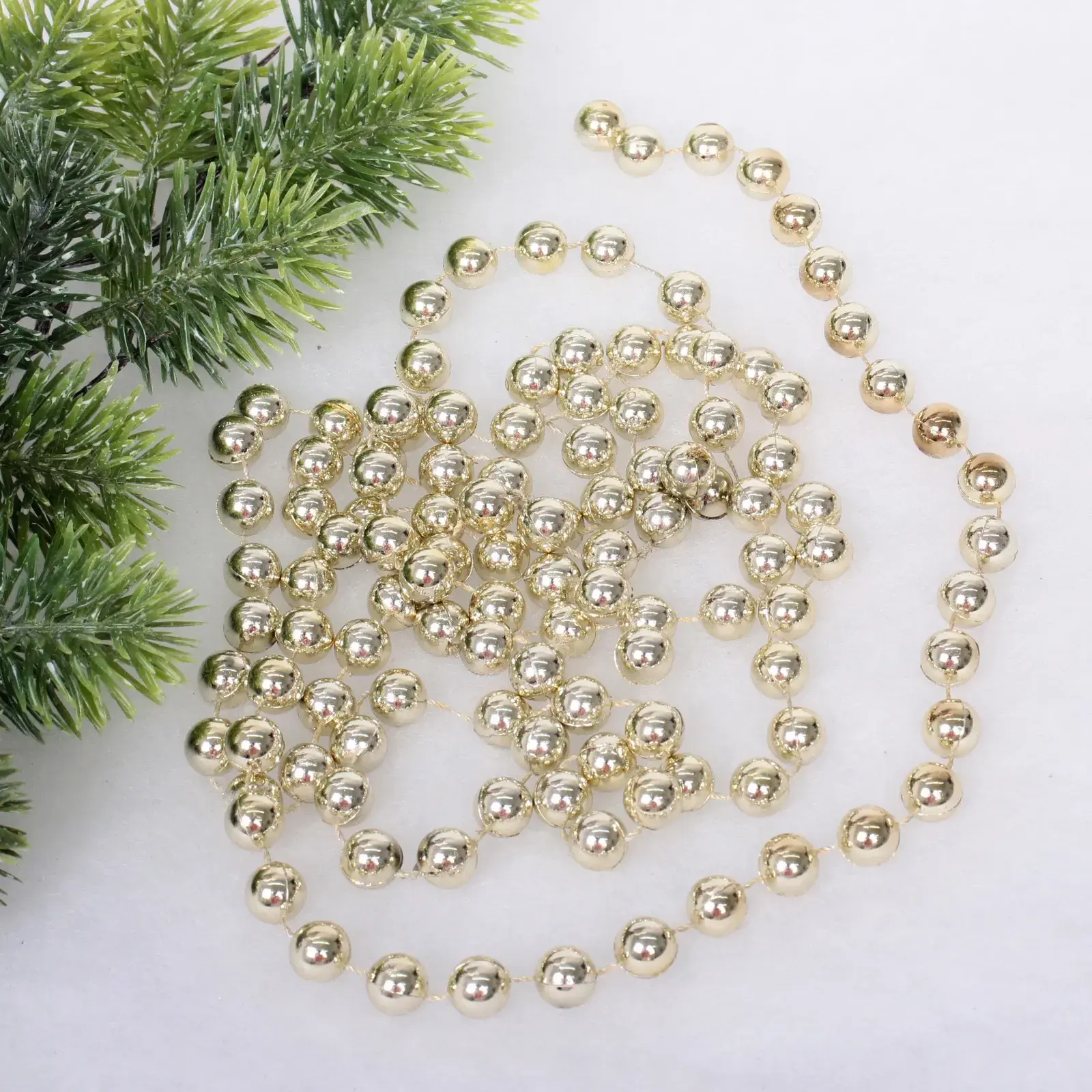 Длина бус — 2,0 метра, диаметр бусин — 12 мм. Цвет — шампань, что делает их универсальными для сочетания с другими оттенками. Эти бусы станут отличным дополнением к вашему новогоднему декору и помогут создать незабываемую атмосферу праздника.