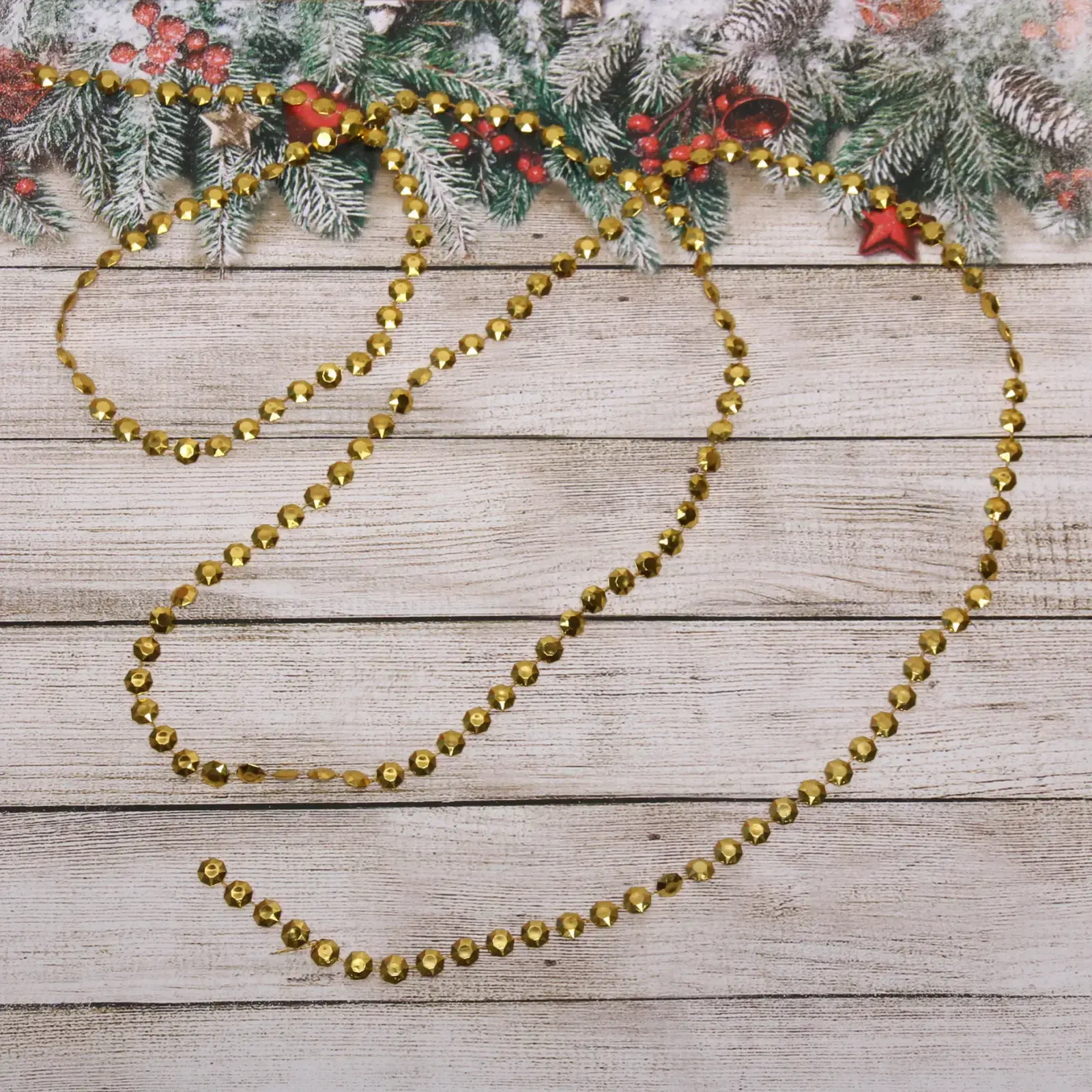 Эти бусы на елку длиной 2,0 метра из пластиковых элементов золотого цвета создают яркую праздничную атмосферу и легко украсят любую елку или интерьер. Их можно использовать для оформления дома, кафе или магазина, добавляя блеска и уюта к вашему празднику.