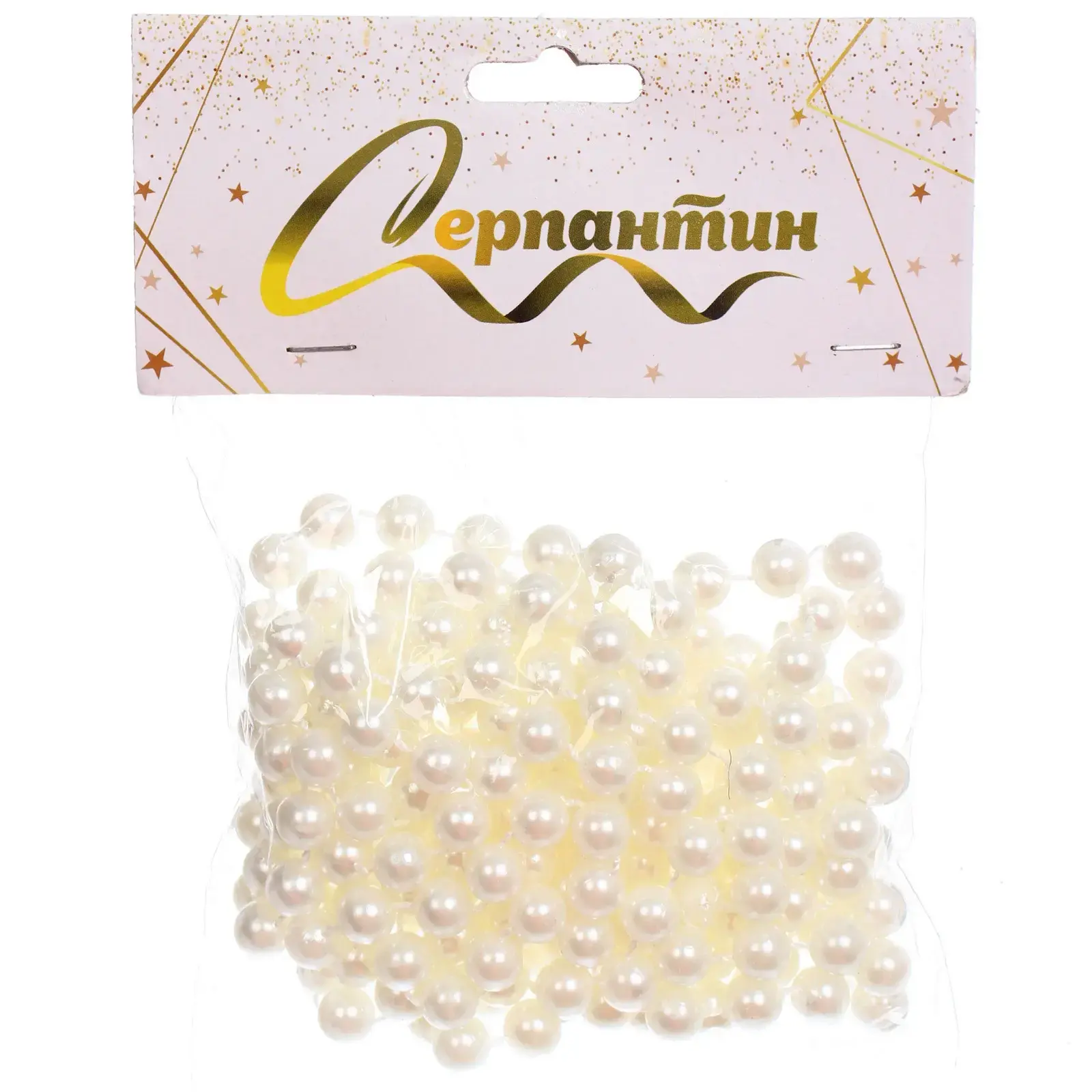 Бусы декоративные на елку 2,7 м, жемчужные, пластик, d-8 мм, белый