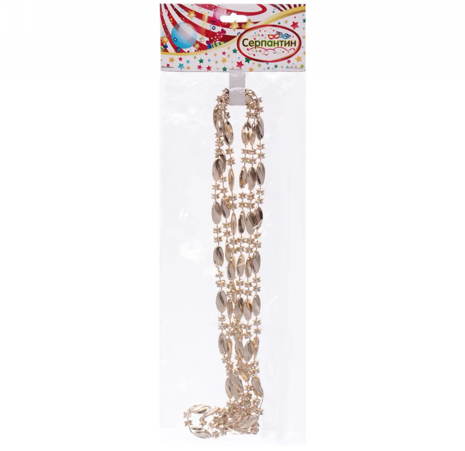Длина бус составляет 2 метра, что позволяет украсить ёлку любого размера. Материал — пластик, что делает их легкими и безопасными для использования в домашних условиях. Бусы имеют блестящую текстуру, что придаёт им эффектный вид и делает их универсальными для любого стиля оформления.