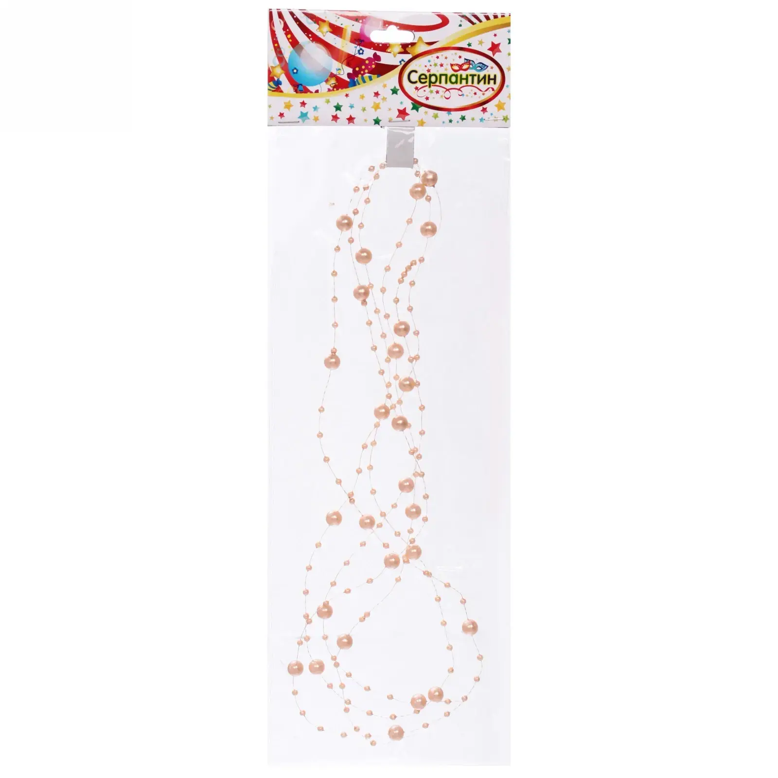 Длина — 2м, диаметр бусин — 7,5мм, материал — пластик (гипоаллергенный), цвет — шампань с жемчужным отливом. Универсальный выбор для создания гармоничного пространства — каждый праздник станет особенным.