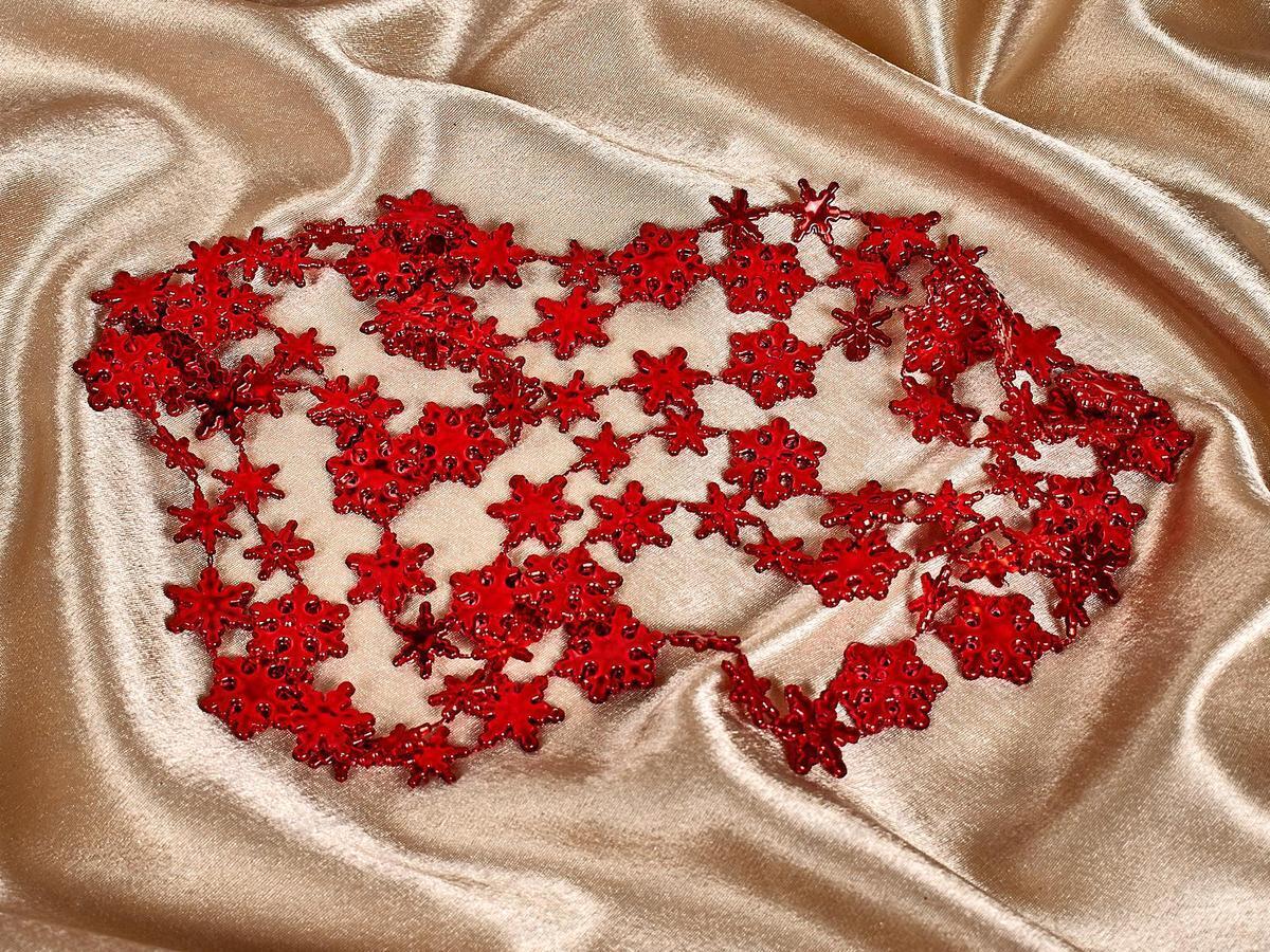 Бусы елочные "Снежинки", праздничный декор, красные, 2 м, пластик глянцевый
