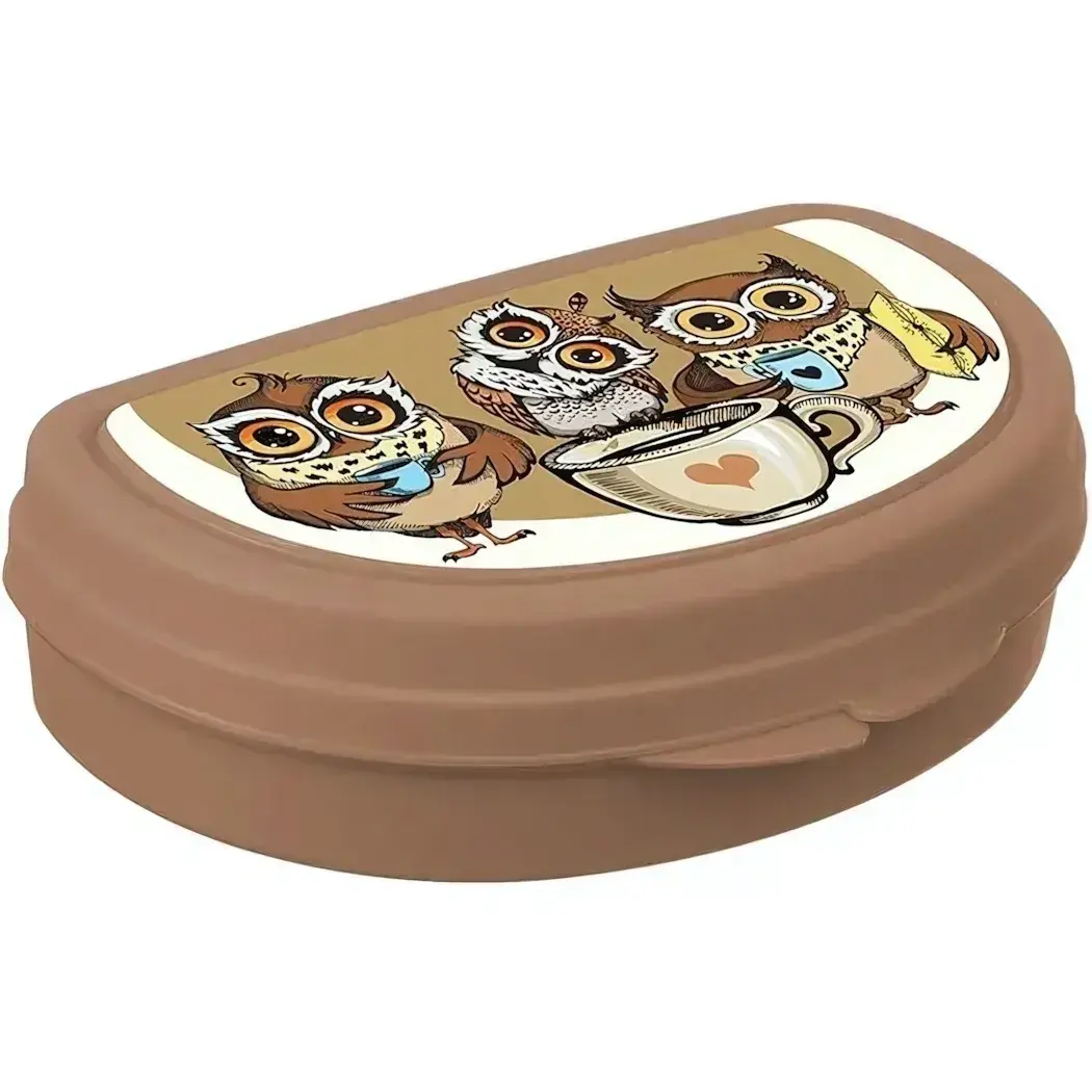 Контейнер для бутербродов детский «Совы» 15 см, пластик, овальная форма, коричневый