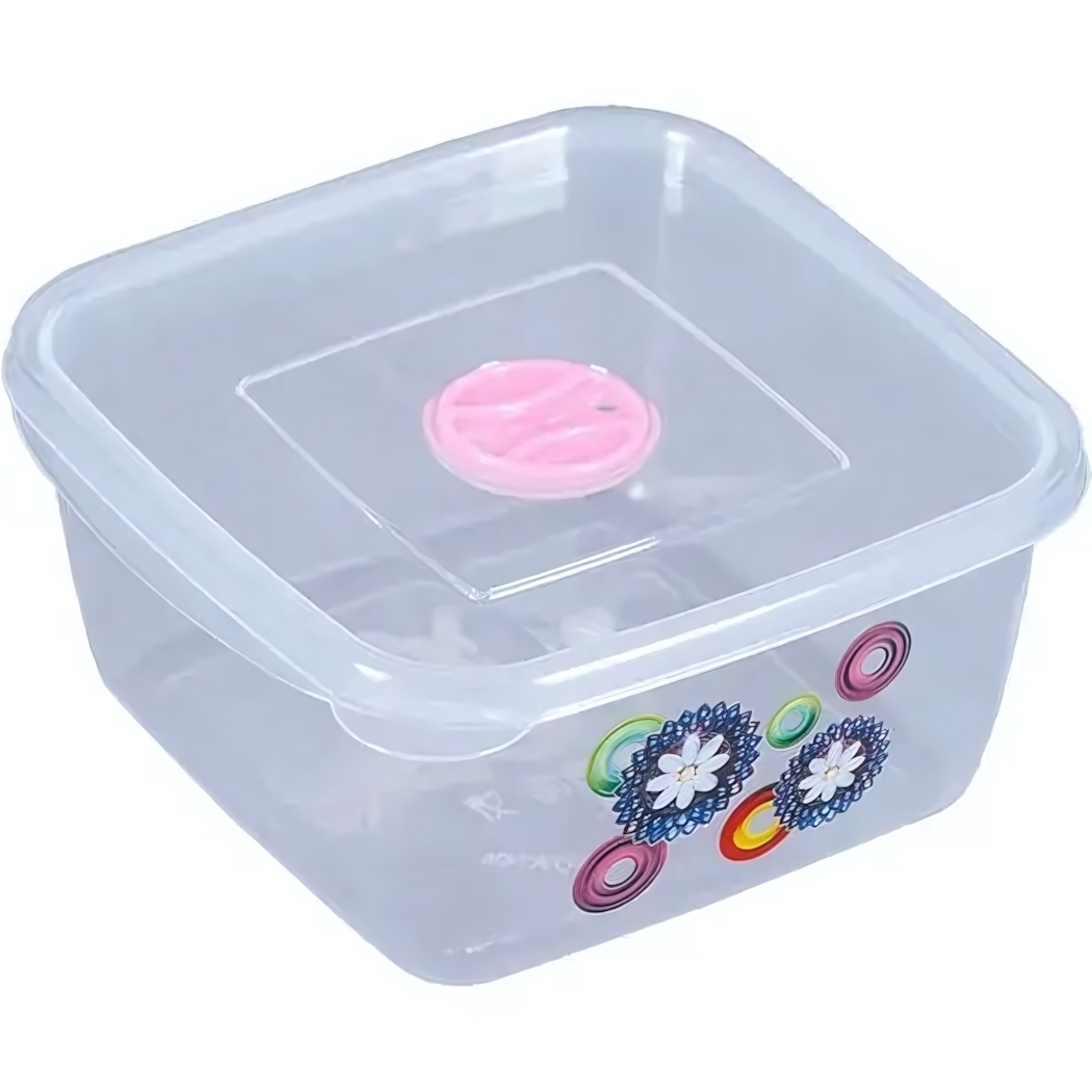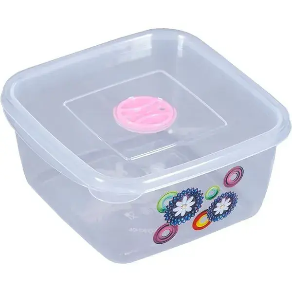 Контейнер для СВЧ квадратный 1л, герметичный, прозрачный пластик с розовой крышкой «Ар-Пласт»