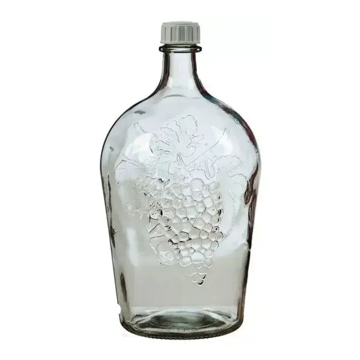 Стеклянная бутыль 3л с виноградным узором, комплект 4 шт, d38, пластиковая крышка