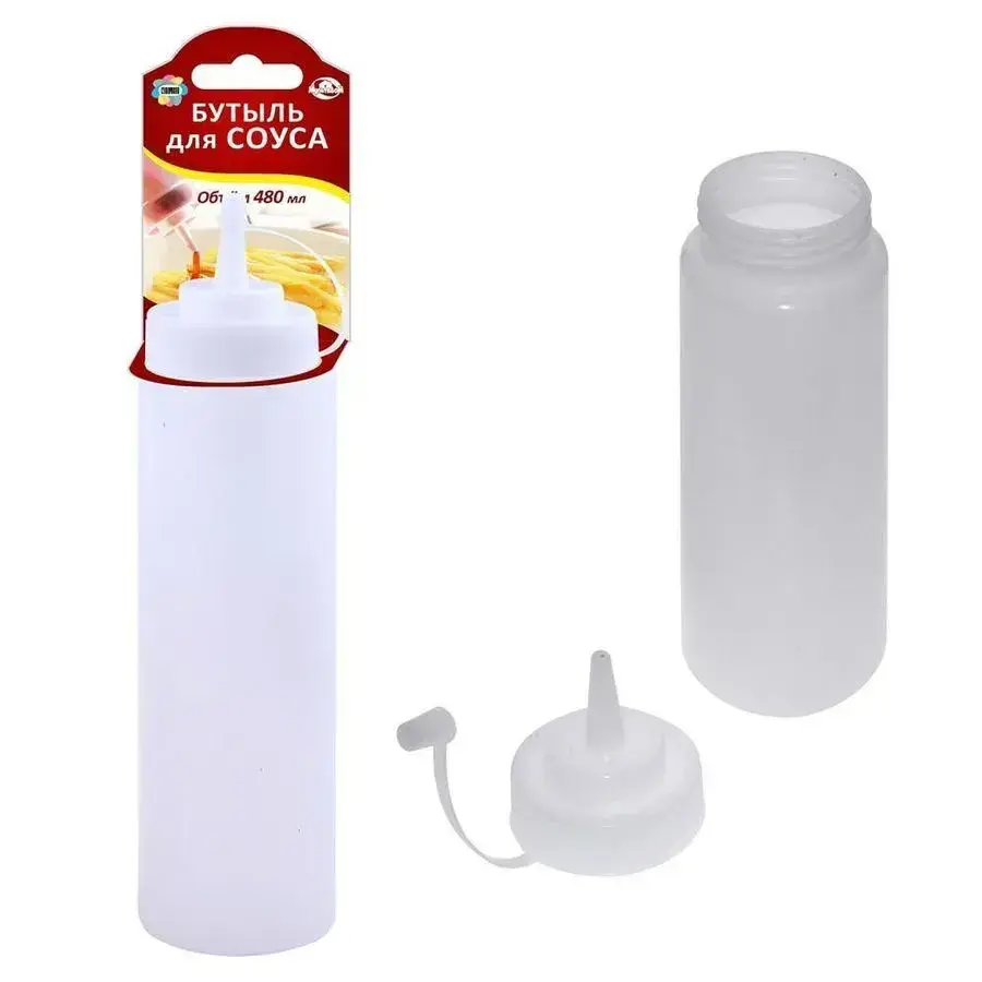 Бутыль для соуса с удобным носиком, 480 мл, пластик, белый, модель "MS80-250"