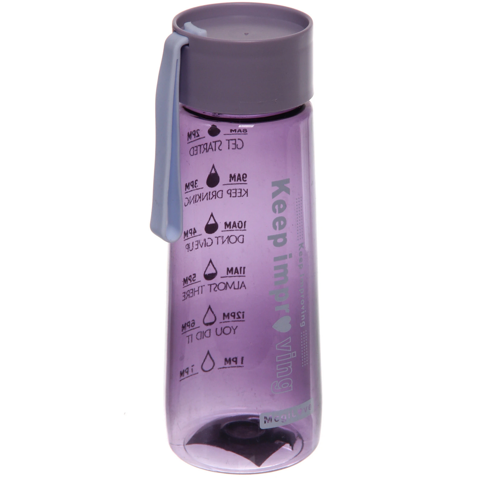 Питьевая бутылка объемом 480 мл помогает поддерживать оптимальный уровень жидкости в течение дня. Благодаря нанесенной временной шкале с мотивационными надписями вы легко отслеживаете, сколько уже выпито, и формируете полезную привычку пить воду регулярно. Компактный формат делает ее удобной для повседневного использования.