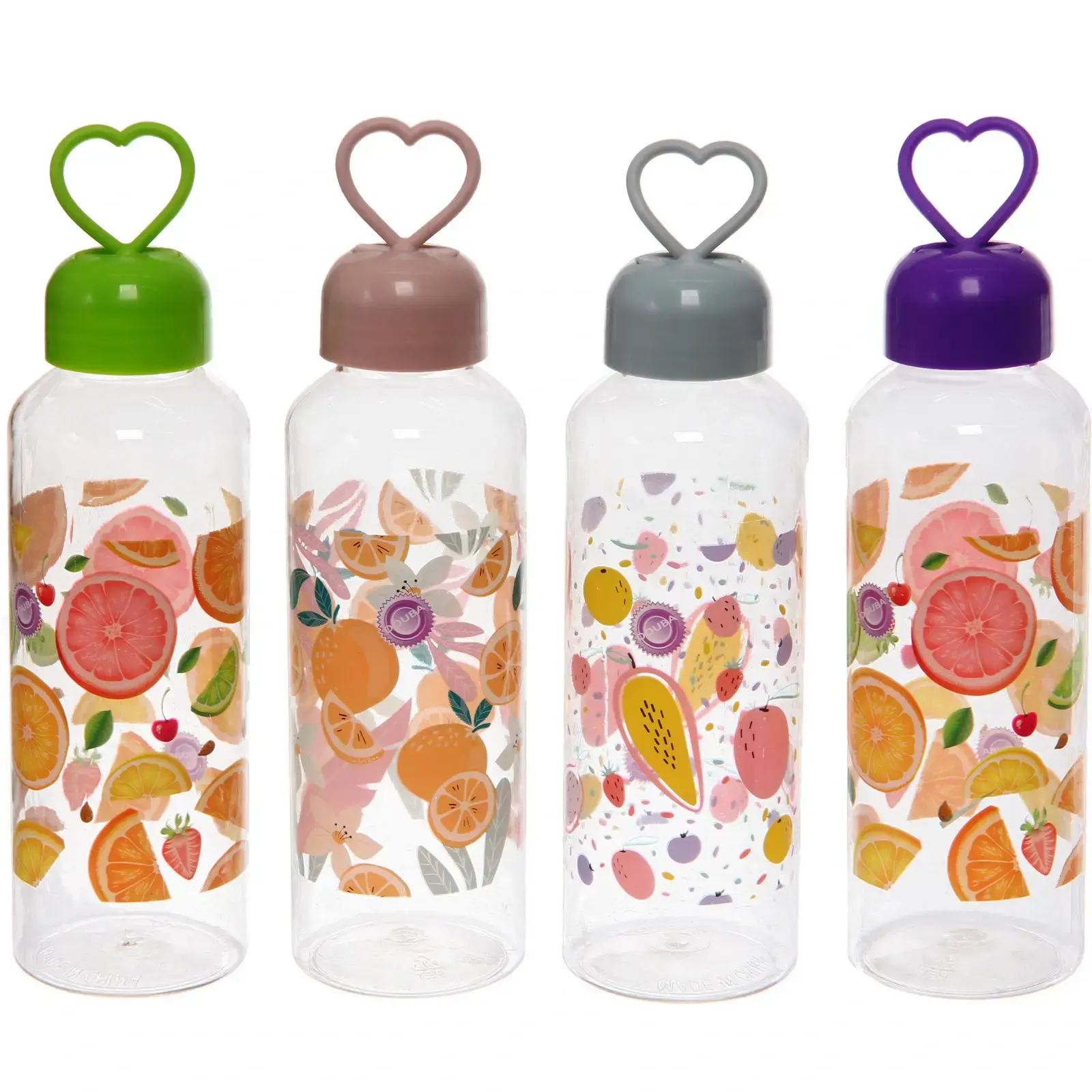 Бутылка для воды 550 мл с фруктовым принтом, микс цветов, крышка-ручка в форме сердца